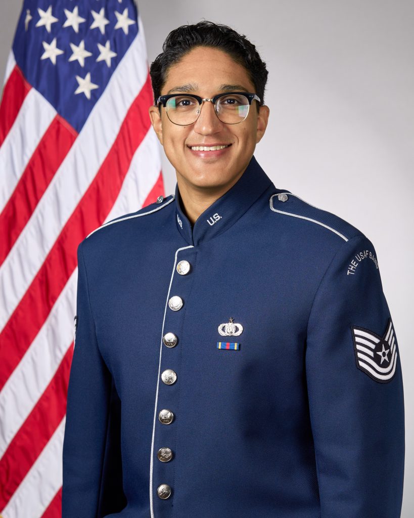 Technical Sergeant John Reyna (’21 BM Tuba Performance) has only been with the U.S. Air Force Concert Band since January but is already realizing that being a military musician is a rewarding career: