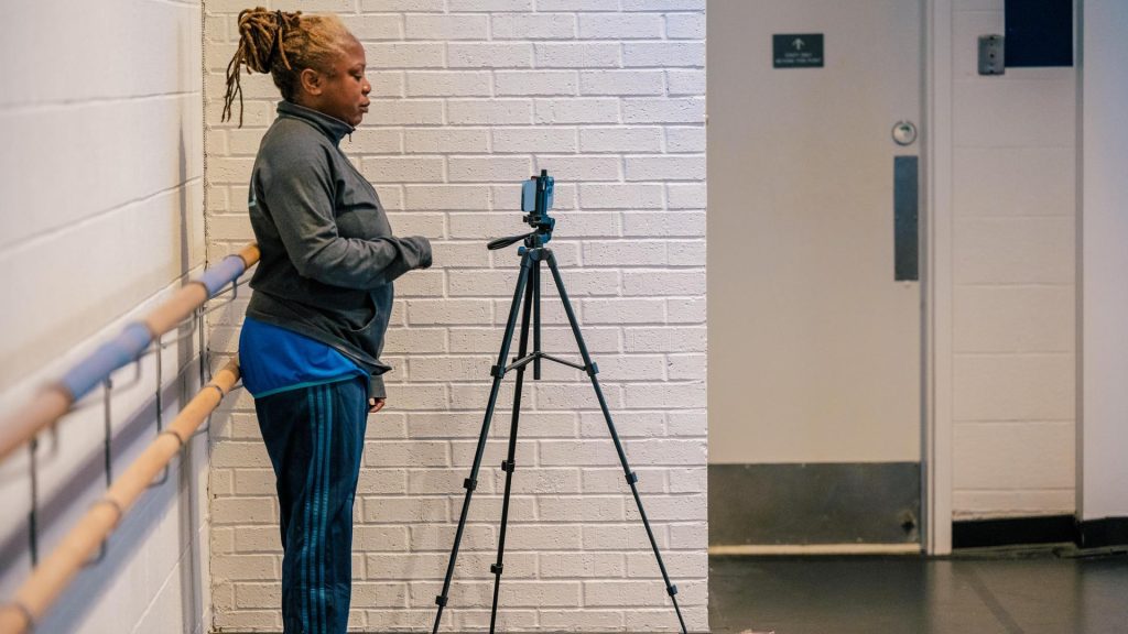 Robin Gee, Professor of Dance and dance filmmaker, recording one of her Contemporary Dance classes. Photo credit: Sean Norona