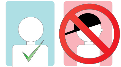 • No head coverings (except for religious observance)