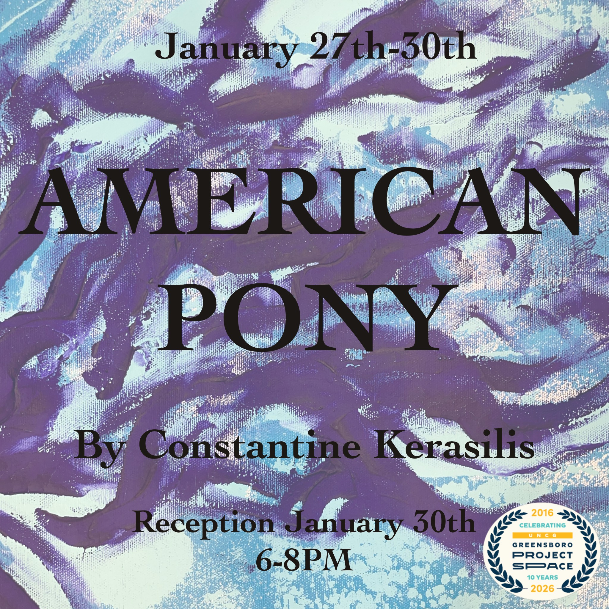 American Pony Solo Exhibition by Constantine Kerasilis January 27-31, 2026 Reception: Friday, Jan 30th | 6-8P More About American Pony American Pony is a group of work consisting of paintings, drawings, prints, and sculpture focused on the psychology of Americans under the rise of fascism. Simplified and abstracted within the metaphor of tortured ponies, this series... Continue reading...
